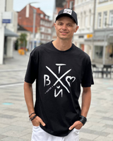 ✔ Frontprint mit starkem Symbolik-Code – Das ikonische „TWOI“-Kreuz-Design mit Herz, Schriftzeichen und FAKTOR 2 Signature.