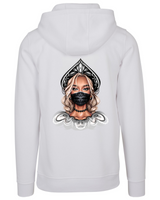 Elegant. Mystisch. Und kompromisslos stark. Der MADAME MASKIERT HINTEN HOODIE zeigt eine maskierte Slavic Queen auf dem Rücken – geheimnisvoll, kunstvoll und mit königlicher Präsenz. Ein Fashion-Statement, das zwischen Tradition, Digital Art und moderner Selbstbestimmung balanciert.
