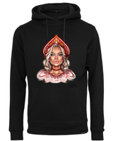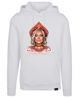 Feminin. Stark. Unübersehbar. Der MADAME VORNE HOODIE zeigt ein digitales Kunstwerk mit Slavic Crown Energy. Die moderne Madame mit traditionellem Kopfschmuck ist mehr als Print – sie ist Identität, Attitude und Hommage in einem.