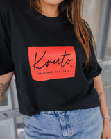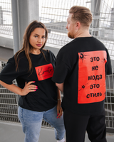 ✔ Doppelseitiger Print – Vorn mit handgeschriebenem „Kruto“-Logo auf rotem Block, hinten mit klarem Statement: „Это не мода это стиль“, verziert mit Einschussloch-Grafiken – markant & kompromisslos.
